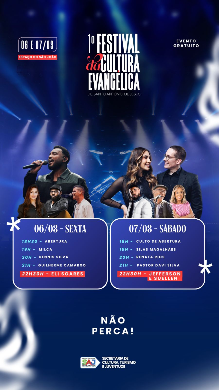 A Prefeitura de Santo Antônio de Jesus informa que está aberto o credenciamento da imprensa para a cobertura do 1º Festival da Cultura Evangélica, que será realizado nos dias 6 e 7 de março, no Espaço do São João.